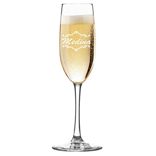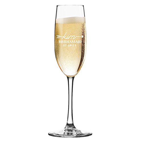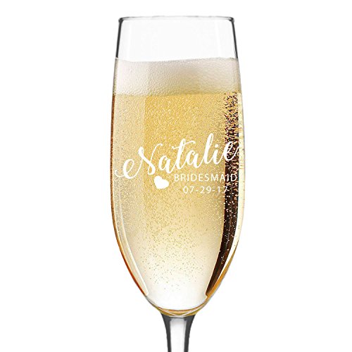Product Description Celebrate in style with beautifully engraved champagne flute glasses. These are permanently engraved and etched right into the glasses and will never fade or wash away. Personalization of each custom glass is included in the price! Measures 9" high and hold 6 oz. 0