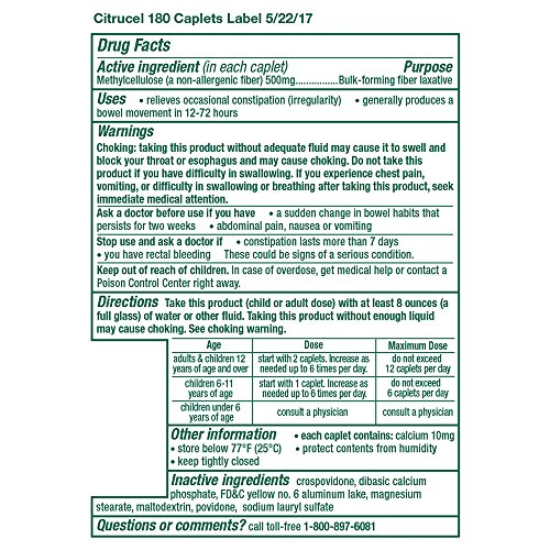 Citrucel with Methylcellulose Fiber is fiber therapy that is clinically proven effective to help relieve occasional constipation. In an easy-to-swallow caplet form, our classic go-to formula gently helps relieve irregularity (When used as directed). Now you can get the fiber you need to help with irregularity without unwanted gas (Based on laboratory testing. Individual results may vary).Feature