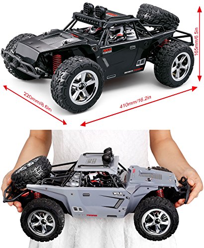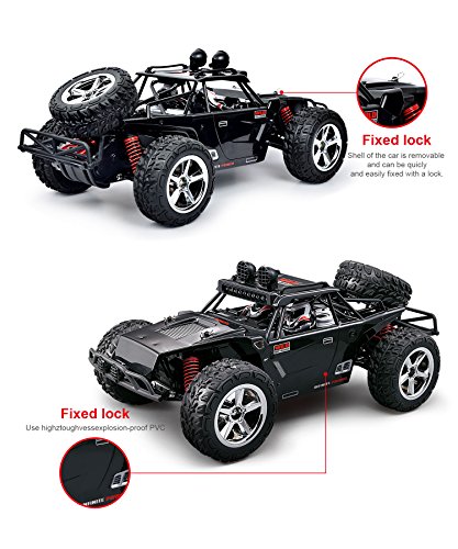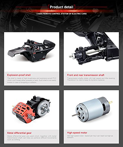 -. Feature : 1 / 12 full proportional off - road vehicle, Powerful motor, maximum speed is up to 30 km / h. Remote Control Car with white and red LED lights, makes you feel Cospla at night. High speed Warhammer truck makes you experience the thrill of speed . / Anti-interference, several RC car competitive at the same time and place. 20 mins playing time, 3 hours full charging, 2.4Ghz Radio System and over 50M Remote Control interference-free distance allow you achieve pretty high-speed off road and drift. / With independent shockproof system, it can prevent damages caused by the vibration effectively. Full metal gears parts. Adopt the high toughness explosion - proof PVC shell / Rubber wheels prevent slippery Realistic car design, fashion and cool; Adopt three stage differential gear with the most complex technology in high speed auto industry. / Applicable field: ground, grass land, sand land....