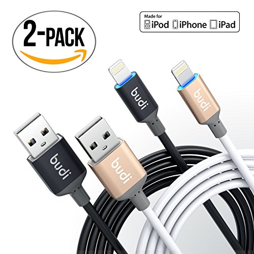 -. Feature : Unique design USB lightning cable with LED light for your iPhone and iPad / Fast Charging & Sync Data Transfer. BUDI lightning cable - Wide-diameter wires and reduced cord resistance maximize charge speed / Ultra-Durable. Aramid fiber makes it thoroughly resistant to fraying and wear-related damage / Excellent Quality. BUDI Lightning cable with LED, heat-resistant connectors ensure complete safety. Polished housing not only fits perfectly with your devices, but also protects against physical stresses / Perfect package of black and white lightning cable. Great replacement for the standard cables and very useful for different occasions