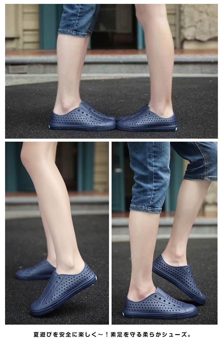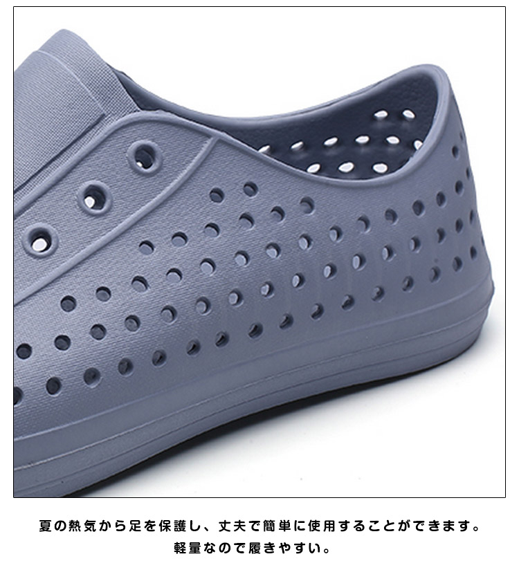 | 超軽量!水陸両用タイプのサンダル。夏遊びを安全に楽しく?!素足を守る柔らかシューズ。メッシュ素材なので通気性が良く、ムレを防ぎ、快適な足空間を保てます。とても軽量なので疲れにくく動きやすく、さらに持ち運びにも便利なので普段履きだけでなくアウトドアにもおすすめ。一足は持っていたいアイテムです。 | |