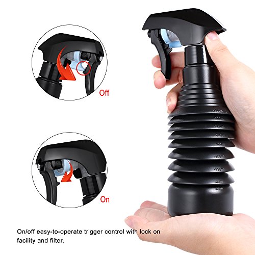 Studio : Anself Publisher : Anself Binding : Misc. Product Description Description: Adopting good ABS material, which is durable for long term use. Its well-sealed nozzle will spray fine mist, very convenient to operate, unique head design is comfortable to grip. Such a wonderful goods, just bring it home! ? Features: Adjustable design, can be adjusted to different size and different capacity to meet different needs. The spray trigger head with well-sealed nozzle will spray fine mist, easy to operate. On/off easy-to-operate trigger control with lock on facility and filter. Suitable for home use and professional hairdressing salon use. Good ABS material, durable for long term use. ? Specifications: Material: ABS Capacity: Approx.140ml-300ml Color: Black Folded Size: 18.0 * 9.0 * 5.5cm / 7.1 * 3.5 * 2.2in Spread Size: 23.0 * 9.0 * 5.5cm / 9.1 * 3.5 * 2.2in Item Weight: 62.7g / 2.2oz