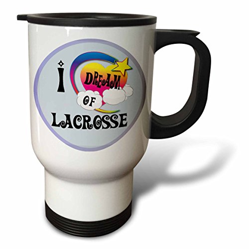3dRose Cute Girly Heart Star Clouds I Dream of Lacrosse Travel Mug, 14-Ounce