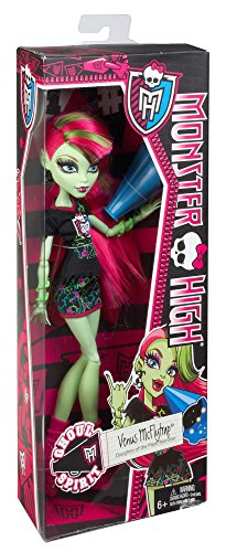 -. Binding : Toy -. Brand : Monster High -. Department : baby-girls -. EAN : 8856623458382 -. Feature : The Ghouls of Monster High are showing their school spirit / Venus McFlytrap doll will captivate audiences with her bullhorn / Dressed in a pink-trimmed miniskirt and Monster High school t-shirt with its shredded edges / Doll is fully articulated so they can be posed in many different ways / Includes doll and spirit-themed outfit -. IsAdultProduct : 0 -. Label : Mattel -. LegalDisclaimer : Some boxes may have shelf wear and may *not* BE COLLECTOR GRADE. If you are a COLLECTOR and looking for a P.R.Istine Box, please message to ensure first. -. Manufacturer : Mattel -. Model : BDF09 -. MPN : BDF09 -. PackageQuantity : 1 -. PartNumber : BDF09 -. ProductGroup : Toy -. ProductTypeName : TOYS_AND_GAMES -. Publisher : Mattel -. Studio : Mattel -. Title : Monster High Ghoul Spirit Venus McFlytrap Doll -. UPC : 746775299491 -. Warranty : No Warranty