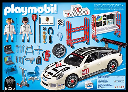 Das Dach ist abnehmbar. Im Cockpit ist Platz für eine Figur. Die Heckklappe kann nach oben geöffnet werden. Verstellbarer Motorsport-Heckspoiler. Mit coolen Lichteffekten (Front-, Heck- und Innenbeleuchtung). Inkl. Auto-Power-Off-Funktion. Enthalten sind zwei Sätze Reifen (mit und ohne Profil). So kann je nach Witterung der passende Satz Reifen montiert werden. Mit viel Zubehör und passendem Werkzeug (z. B. für den Reifenwechsel). Inkl. Kommandostand zur Überwachung des Renngeschehens. Der mobile Reifenwagen bietet Platz für 2 Reifensätze. Siege werden mit dem enthaltenen Pokal und Siegerpodest gefeiert.