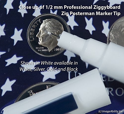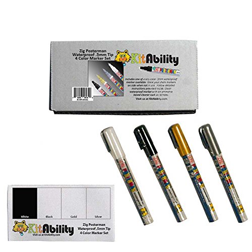 Feature : KitAbility Zig Posterman Waterproof .5mm Tip set includes all four extra fine colors available. / Zig Posterman Waterproof .5mm Tip Markers feature a extra fine tip that creates thin lines on labels, glass, plastic, and more. / Colors include white, black, gold, and silver. / Markers are waterproof but wash off easily with Windex, xylene free, non-toxic, odorless, and highly opaque. / Ships in a sturdy, reusable storage box with color chart and includes instructions on priming and storing your Zig Posterman Waterproof markers.