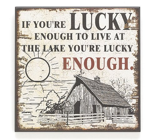 - Wooden Wall Plaque with Message: If You're Lucky Enough to Live At the Lake Your Lucky Enough