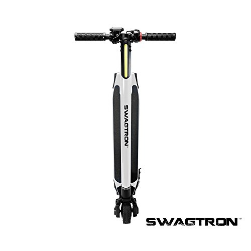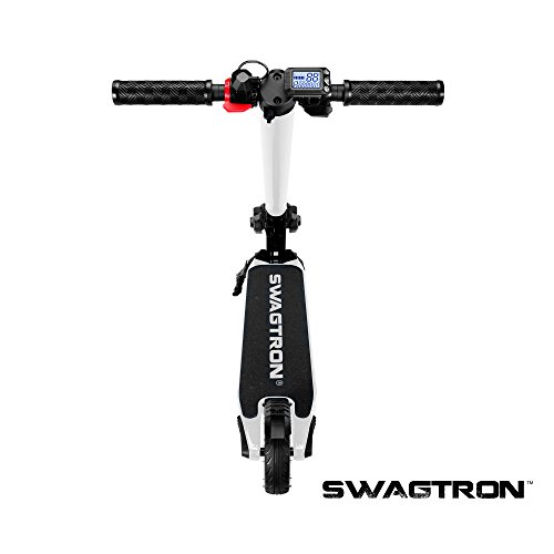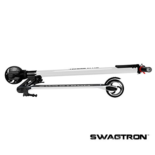 The personal transportation revolution is here. The Swagger e-scooter boasts a 24v, 3800 mAh, lithium-ion battery that accelerates the 3-speed, 250-watt motor up to 15 MPH with a range of 4 to 15 miles. With the SWAGTRON motorized scooter, you never have to show up sweaty from a bike ride again on your way to school or work again, and instead can just cruise down the street with the wind in your hair and a Swagger beneath your feet.