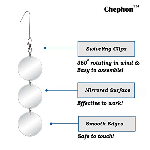 ✔ UPGRADED Version - Each pack has 3 Double-Sided Mirrored discs for more effective bird repellent. Forget the useless ones with only one reflective side.