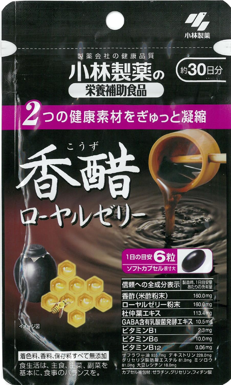 原産国 : 日本 原材料 : サフラワー油、ゼラチン、デキストリン、米酢粉末、ローヤルゼリー粉末、杜仲葉エキス、GABA含有乳酸菌発酵エキス、グリセリン、グリセリン脂肪酸エステル、ミツロウ、レシチン(大豆由来)、フィチン酸、ビタミンB6、ビタミンB1、ビタミンB12 内容量 : 180粒 商品サイズ (幅X奥行X高さ) : 100mm×25mm×165mm