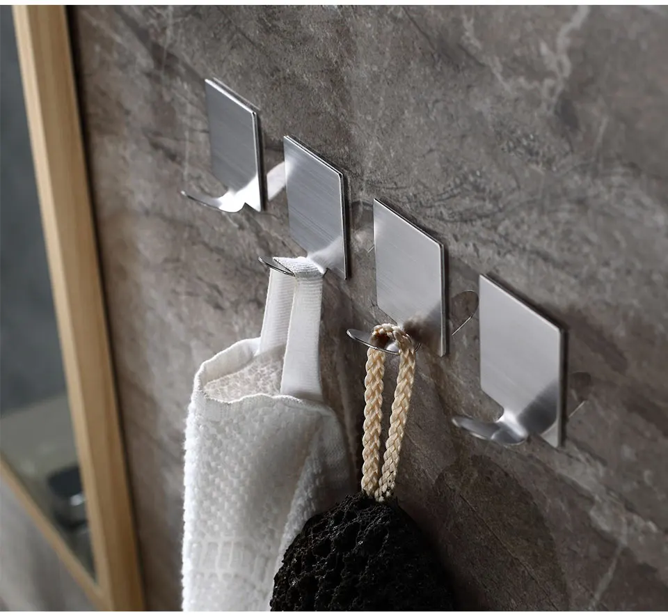 Shape:4pcs Square Stainless Steel Wall Hooks