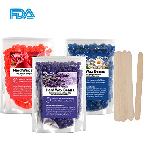 Body Hair Removal Hard Hot Wax Beans, AOGETYO Painless Lavender Strawberry Chamomile Wax Full Body Brazilian Bikini Wax for Women Men+10p...
