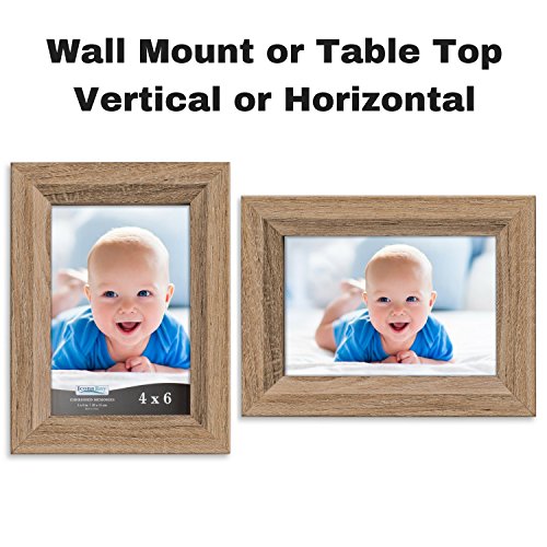 Displaying personal photos and mementos adds warmth to your home and gives it a unique personality. The warm look of wood in Antique Oakwood, Heritage Gray, or Weathered Oak will enhance any decor in your home or office. Constructed of a high-quality MDF with wood veneer printed paper wrapping, the frames have the look and feel of real wood but are more durable and stand up better to changes in temperature and humidity.