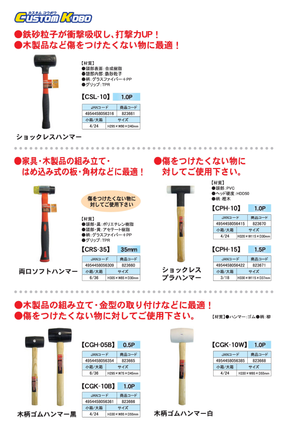 ●木製品の組立・金型の取り付け等に最適なゴム製ハンマー