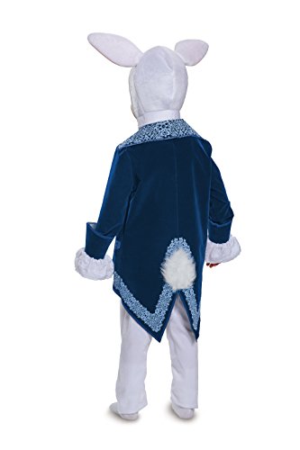 -. Binding : Toy -. Brand : Disguise -. ClothingSize : One Size -. Color : White, Blue -. Department : boys -. Feature : Toddler White Rabbit Deluxe Costume / 100% polyester fabric w/ mixed-fiber flocking; 58% acrylic, 42% polyester faux fur; 100% polyurethane foam / Jacket has embroidered sleeve cuffs, flocking to resemble braid trim / Vest front panel is sewn into left side & shoulder seams; fastens on right w/ Velcro / Cravat sewn to fabric neck band that fastens at back w/ Velcro -. Label : Disguise Costumes - Toys Division -. Manufacturer : Disguise Costumes - Toys Division -. Model : 10097L-parent -. MPN : DI10097 -. PackageQuantity : 1 -. PartNumber : DI10097 -. ProductGroup : Toy -. ProductTypeName : CHILDRENS_COSTUME -. Publisher : Disguise Costumes - Toys Division -. Size : One Size -. Studio : Disguise Costumes - Toys Division -. Title : Alice Through the Looking Glass - White Rabbit Deluxe Costume for Toddler