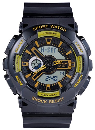 -. Title : Boys Girls Jelly Colourful Multi Function Water Resistant Analog Digital Sport Wrist Watches Black+Yellow