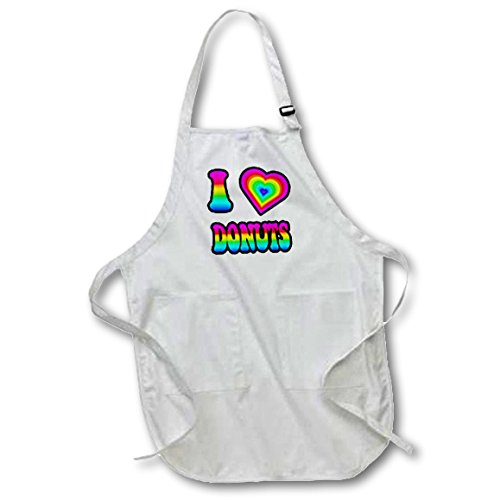 3dRose apr_217408_1 Groovy Hippie Rainbow I Heart Love Donuts Full Length Apron, 22 by 30", White, with Pockets
