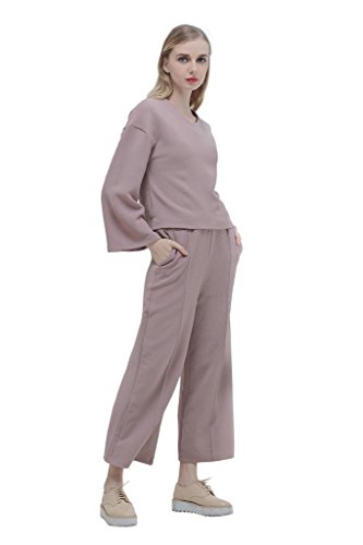 -. Title : アイキーパー(Eyekepper) レディース 上下セット 2点セット 長袖 Vネック トップス+ロングパンツ ゆったり 無地 カジュアル 普段着 3色