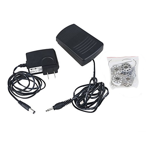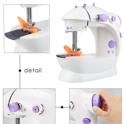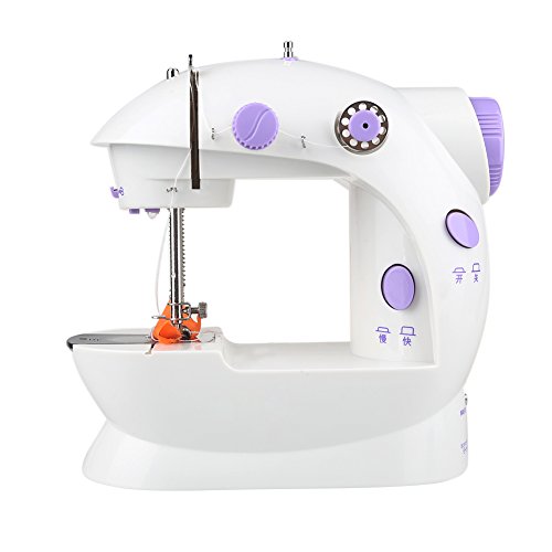 -. Feature : ❤Material:strong and sturdy plastic for the lasting time / ❤Mini 2-speed sewing machine can offers double thread and perfect stitch control,with a top drop-in bobbin, it makes threading the needle seem like a cake walk. The Sew tool also has an automatic thread rewind feature and a simple on/off control button which saves your time and energy. for anything from silk to denim; hand switch or foot pedal to start Top drop-in bobbin ensures easy threading / ❤Small portable and easy operation,and fit for sewing freshman, housewife and student / ❤Package Includes: 1x sewing machine ,4x bobbins, 1x threader, 1xneedle,1x foot pedal / ❤Size:10*20*21cm Or 3.9*7.9*8.3 inch Power Supply: alternating current or batteries Weight: 1.46 pounds