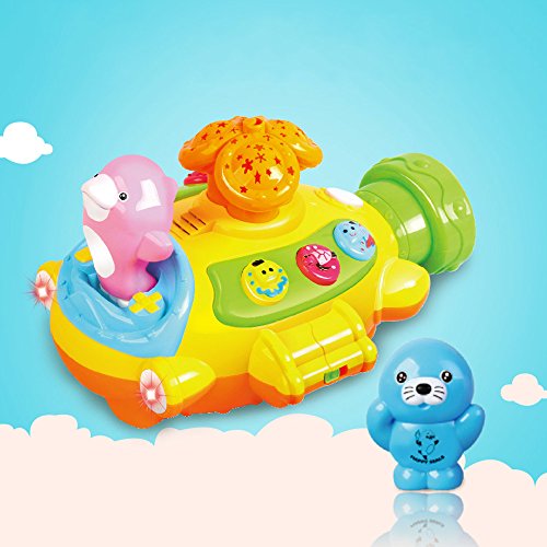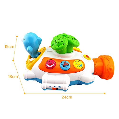 HAPPYTIME MY FIRST MOON AND STARS PROJECTOR SUBMARINE TOY WITH MUSIC AND INTERESTING FUNCTIONS, ADJUSTABLE VOLUME (WHITE .YELLOW COLOR)RANDOM