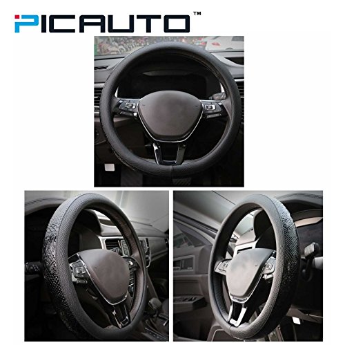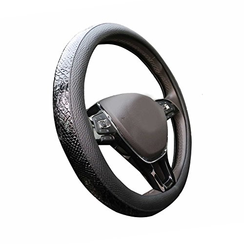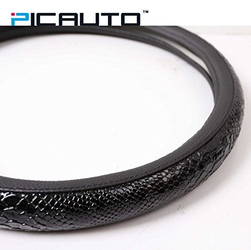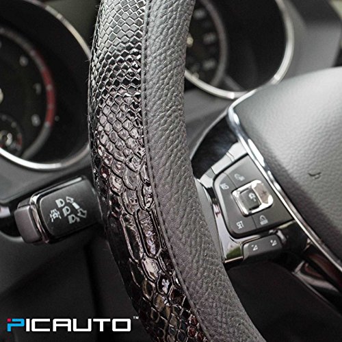 PIC AUTO Steering Wheel Covers Universal 15 inch - PU Leather, Anti Slip & Odor Free, Soft Padding Animal Print Design, Durable, (BLACK)