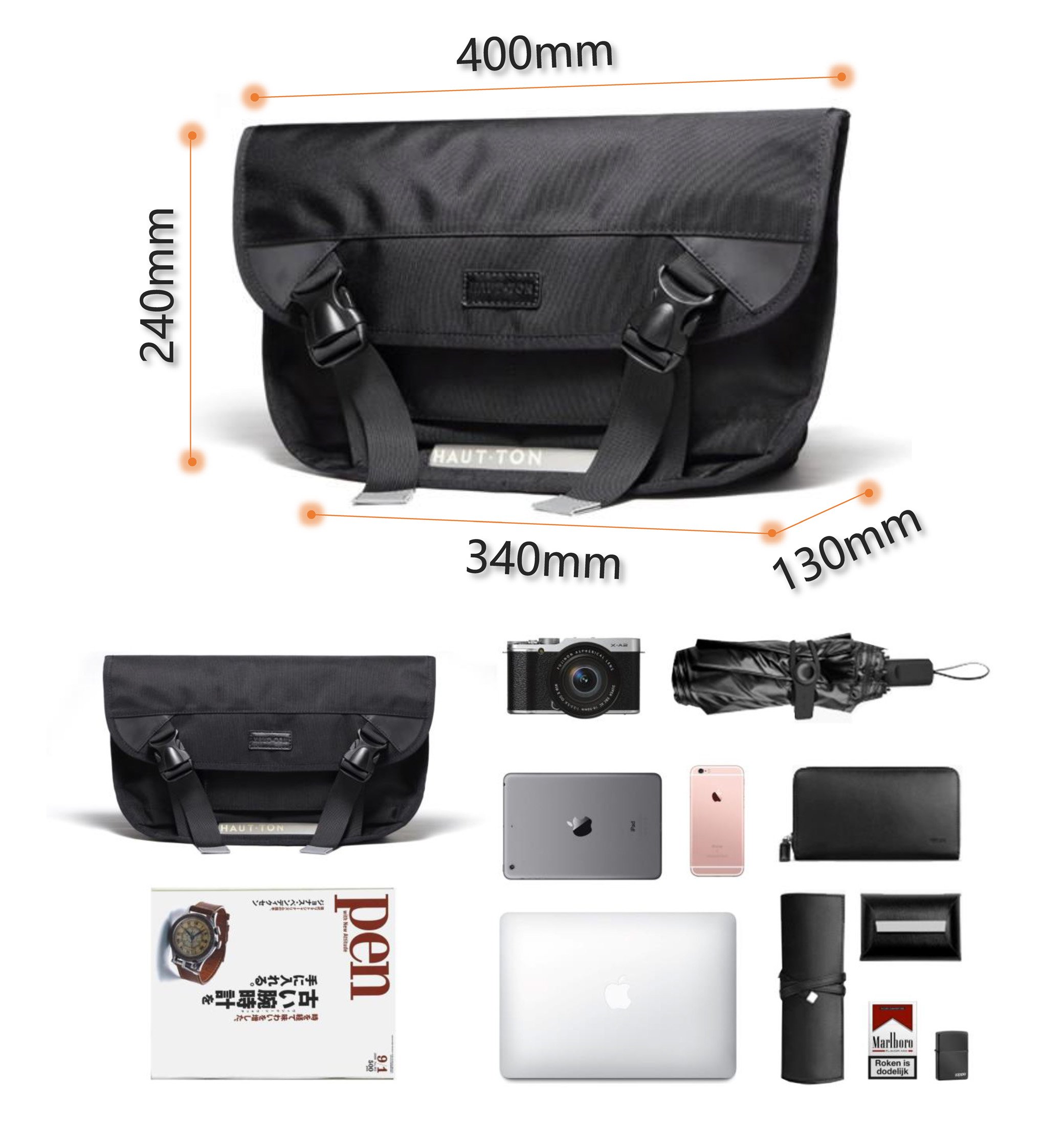 You can store laptops, iPads, cameras, books, documents, folding umbrellas, water bottles and so on.