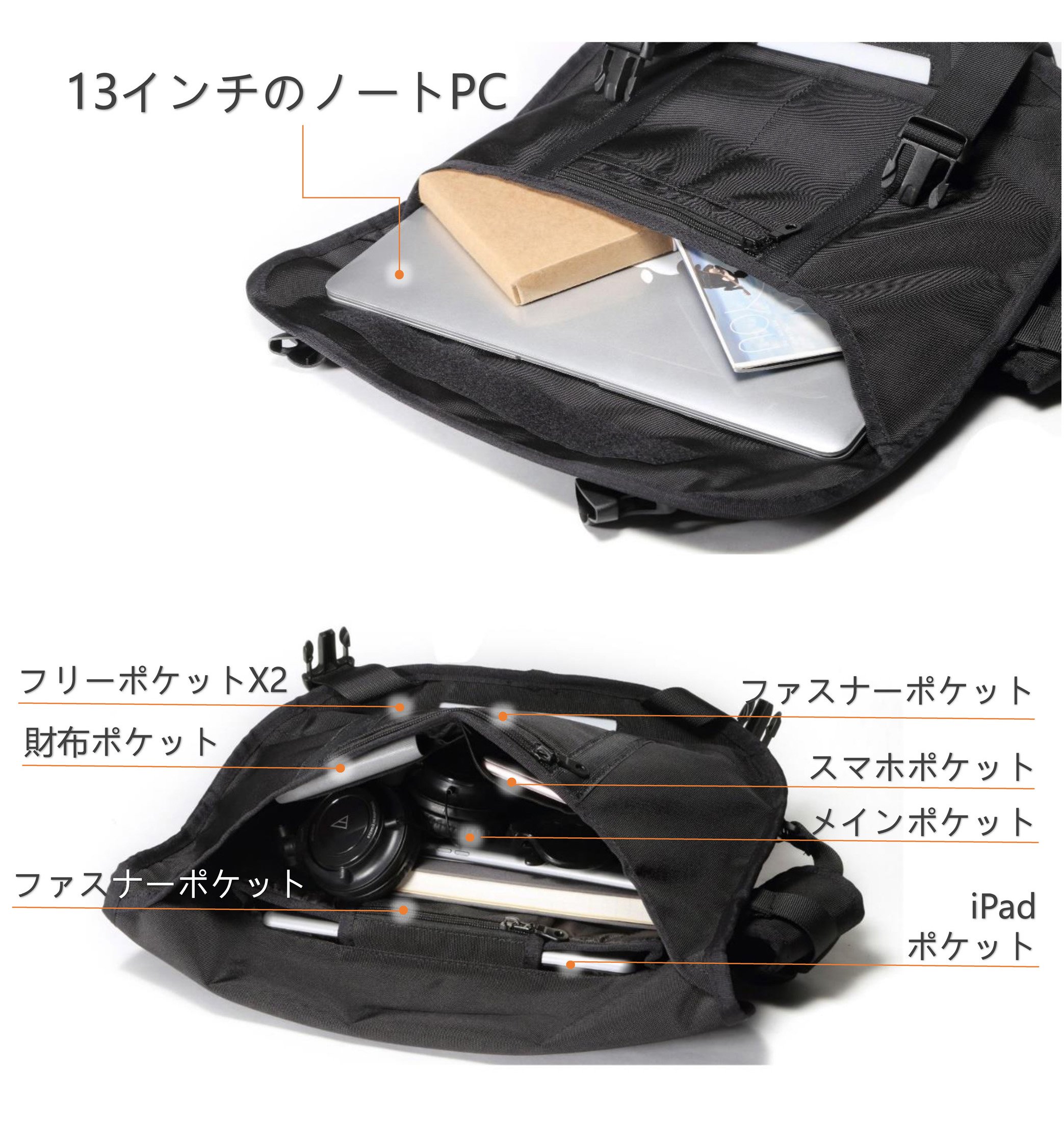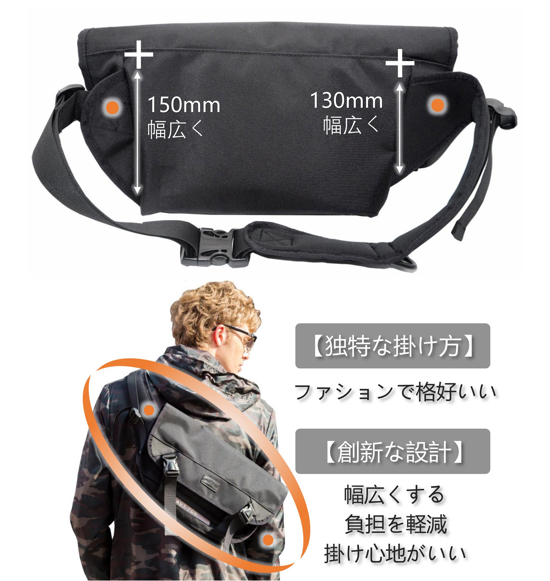 Because it is a design that wears diagonally on the shoulder like a body bag, if you ride a bicycle like an ordinary shoulder bag, you will not be repeating the action to push back frequently back to your back, convenient and practical