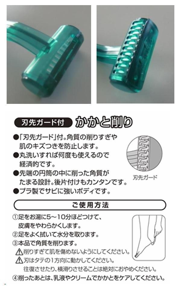 | 角質の削りすぎや肌のキズつきを防止する「刃先ガード」付き。丸洗いすれば何度でも使えるので経済的です。先端の円筒の中に削った角質がたまる設計で後片付けもカンタンです。 |