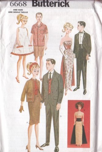 -. Feature : Butterick 6668 / One Size / Retro 11 1/2" Fashion Doll Clothes