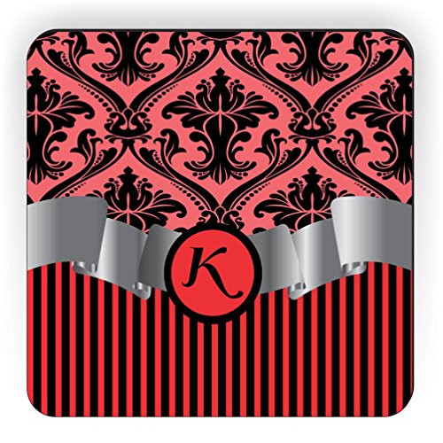 Rikki Knight Letter "K" Initial Red Damask and Stripes Monogrammed Design Square Fridge Magnet