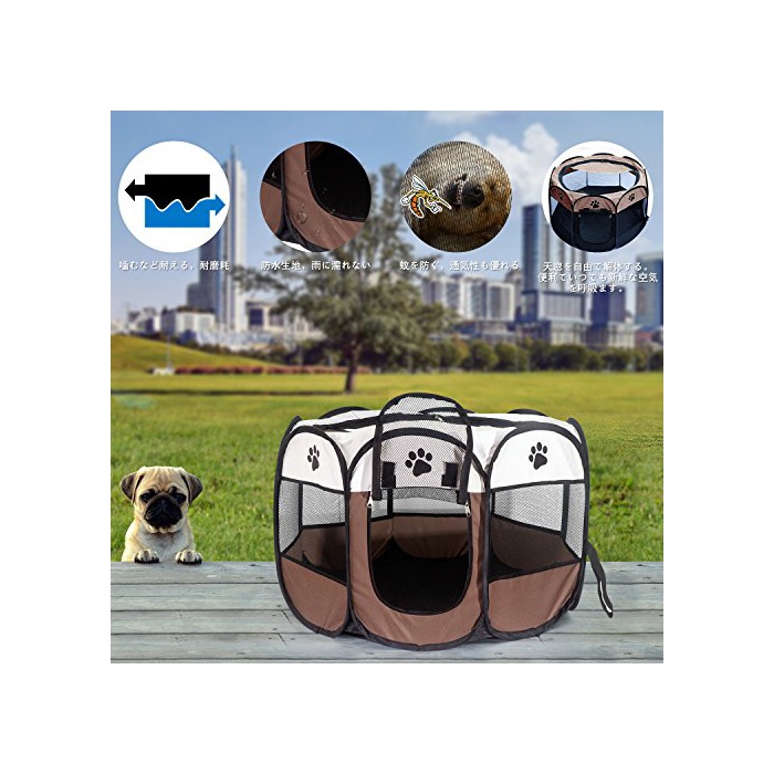 메리트:나일론 소재이기 때문에,내마모로 지속입니다.방수 원단,원단이 잘아 비에 젖는 일이 걱정하는 일이 필요하지는 않습니다.모기를 막는다,메쉬 소재이기 때문에,환기성도 뛰어나 있습니다. 천창을 자유롭고 해체하는 것 를 할 수 있습니다.편리하고 언제라도 신선한 공기를 호흡고 있습니다.8 면통풍,애완동물 하우스용도 최적.