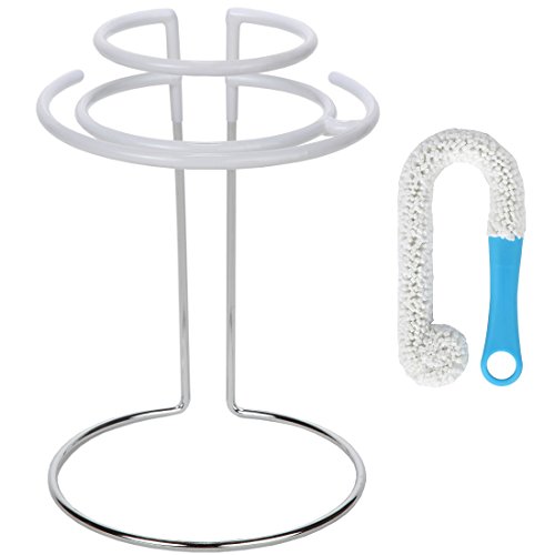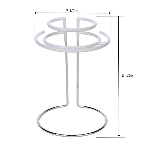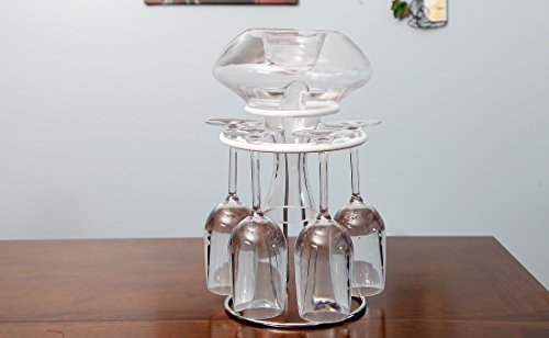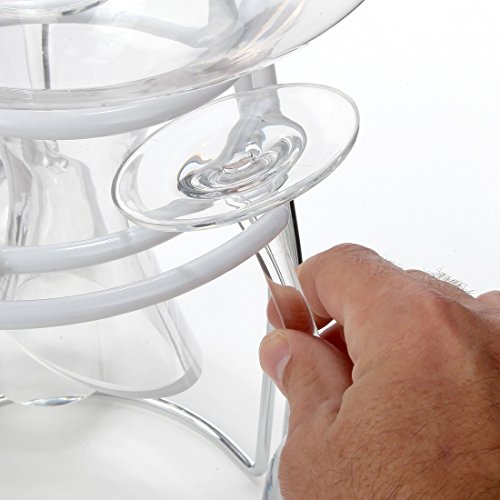 Our decanter drying rack is simple to use and conveniently dries, protects and displays your decanter and your wine glasses. Special rubber coating on the top of the stand protects your decanter and glasses from scratching. This chrome plated steel decanter drying stand not only air dries your decanter to a spot-free finish, it doubles as a decanter rack for all standard size decanters. You are also getting a special decanter cleaning brush that can bent to fit tight or hard to reach place or to use on cleaning your wine glasses. Lightweight. Measure: 10-1/4" tall x 7-3/8" diameter at the base and 5" inside diameter at the top. 0