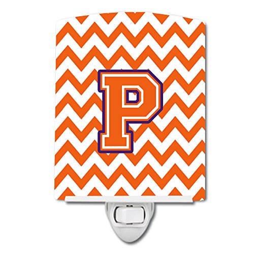 Caroline's Treasures Letter P Chevron Orange and Regalia Ceramic Night Light, 6 x 4", Multicolor