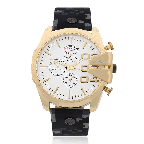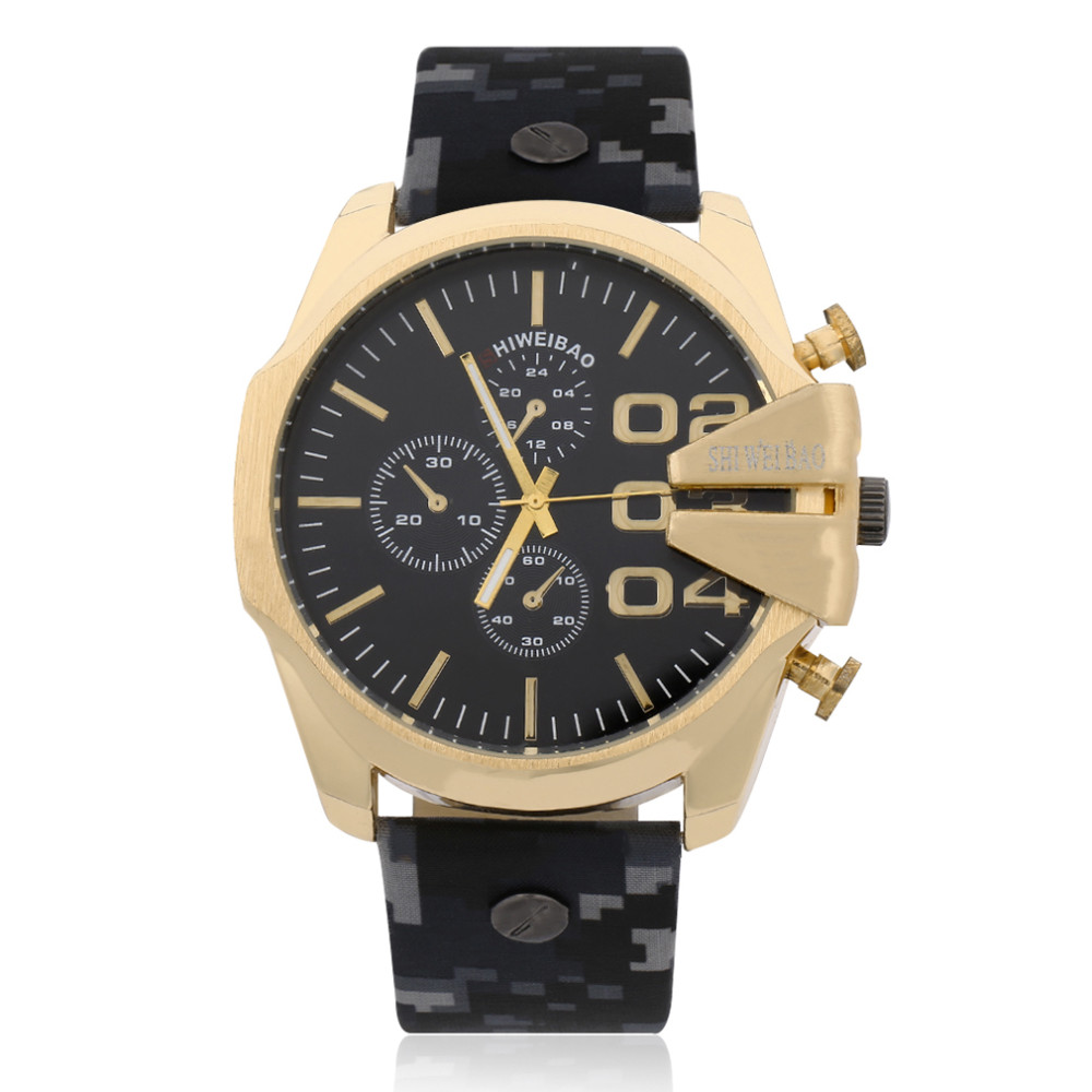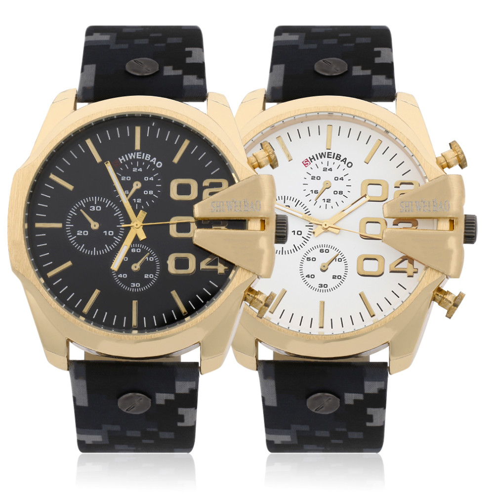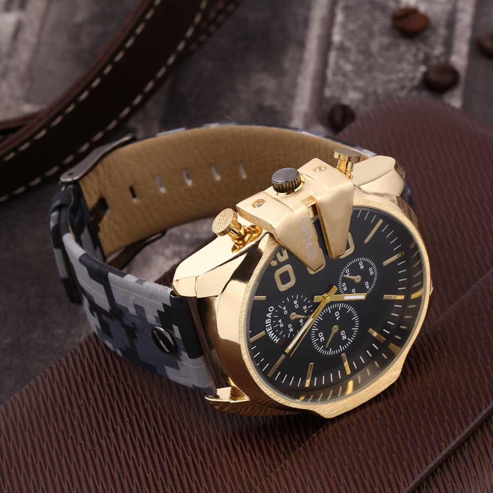 Men\'s Large Display Round Dial Faux Leather Band Quartz Wrist Watch Gifts
