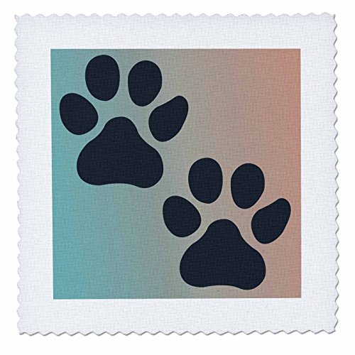 3dRose qs_123667_4 Dark Gray Paw Prints Silhouette Quilt Square, 12 by 12-Inch