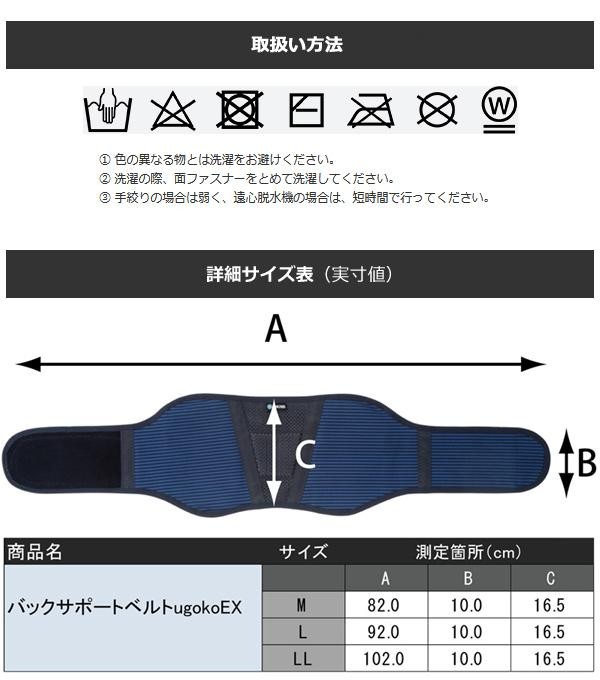 | 仕様 | サイズ:L(腰回り:83~97cm) 男女兼用 対象部位:腰 サポート力:ミドル~ソフト 前あわせタイプ 洗濯方法:手洗い可(非常に弱い処理によるウェットクリーニング可)、日陰での平干し乾燥 |