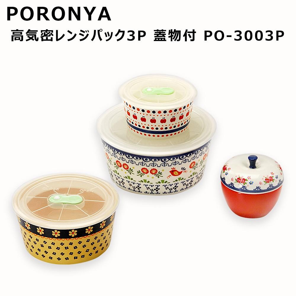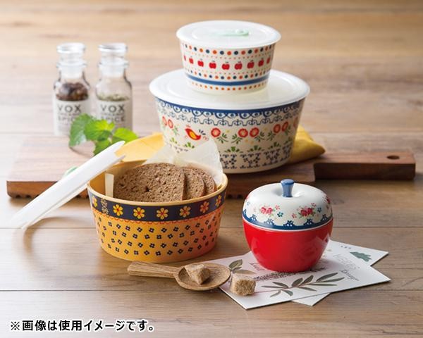 | 愛らしい柄のレンジパックと蓋物のセット。 |