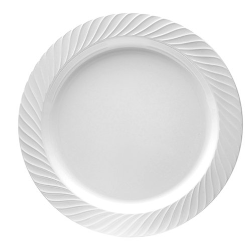 - 20-Count package of white plastic plates with elegant fluted design on edges