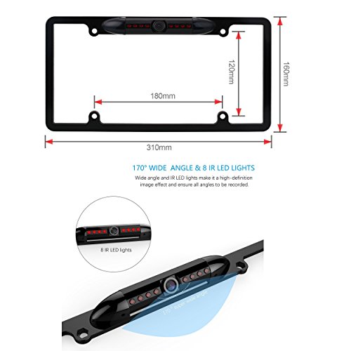 Backup Camera Car License Plate Camera Mount Rear View Camera Universal Parking Cam Super Wide 170 Degrees Viewing Angle Night Vision IP68 Waterproof Shockproof High Sensitive 8 IR LEDs (Black)