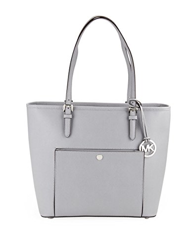 Looking for a larger handbag? MICHAEL Michael Kors' Jet Set Tote carries all of your daily & work essentials in expertly tailored Saffiano leather for a look that says both sophisticated and chic. Saffiano leather Double handles with 9" drop Open top Exterior features gold-tone hardware and hanging logo medallion Interior features center zip divider pocket, 1 zip pocket, 3 open pockets, 1 cellphone pocket and key fob 15-1/2" W x 11" H x 6" DFeature