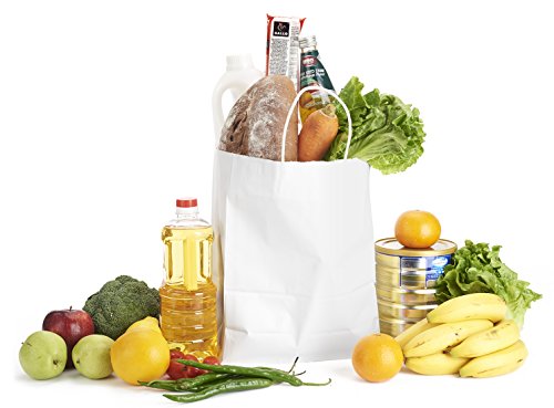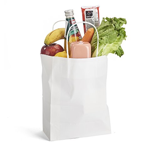 Halulu 100pcs 10"x5"x13" - White Kraft Paper Bags, Shopping, Mechandise, Party, Gift Bags