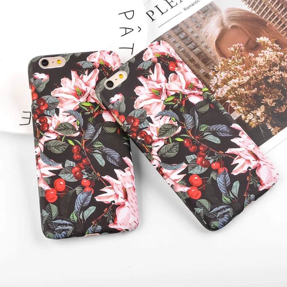 Style:Fashion Cherry Flower Leaf Painting Phone Case
