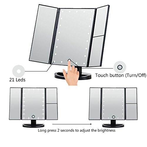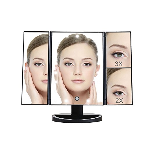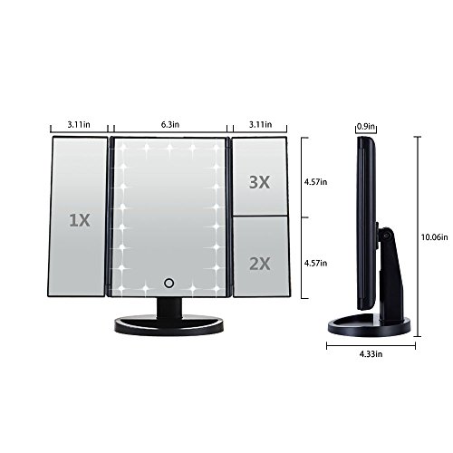 Vanity mirror with lights, DELIPOP 2x3x Mangnifying Touch Dimmable Makeup Mirrors for Bathroom (Black)
