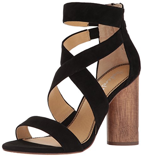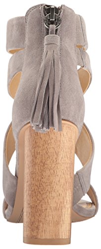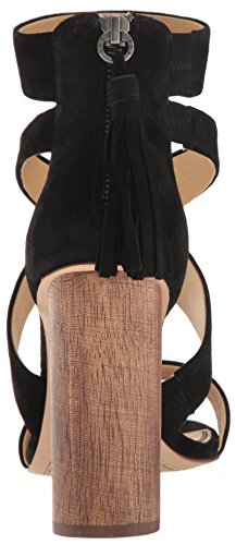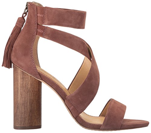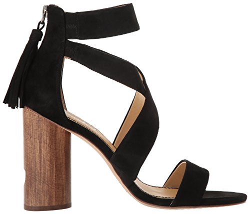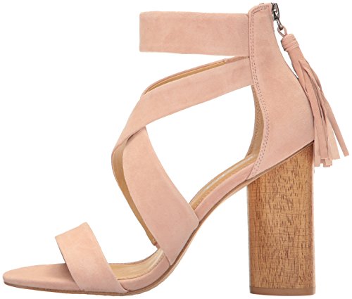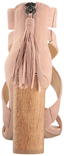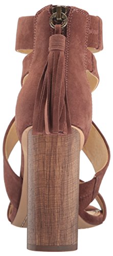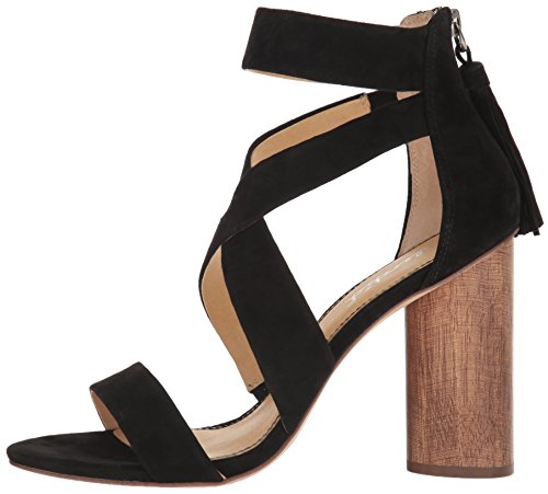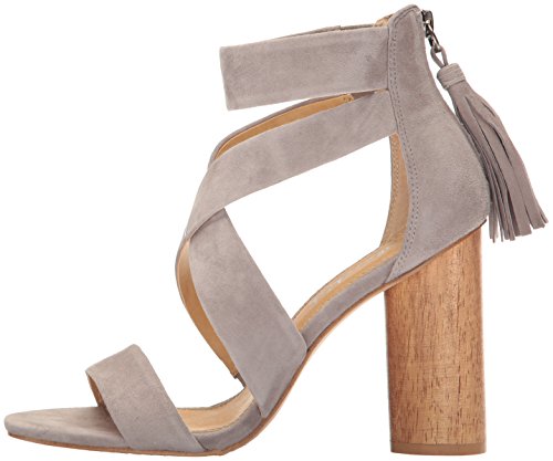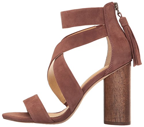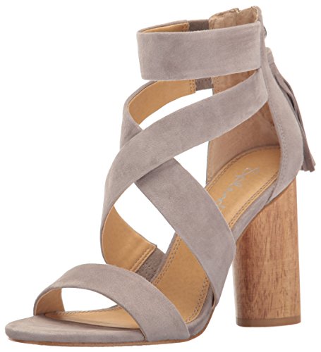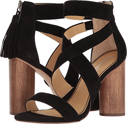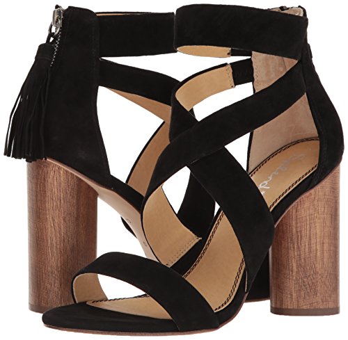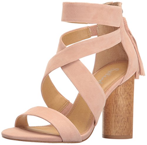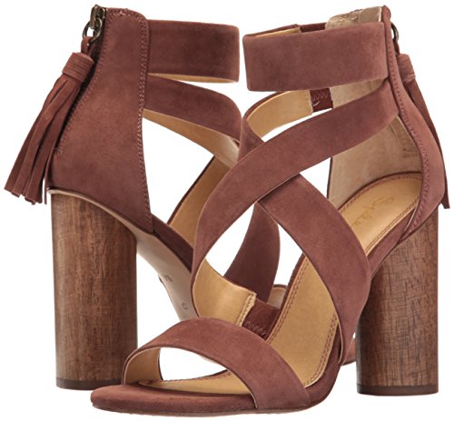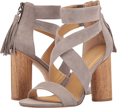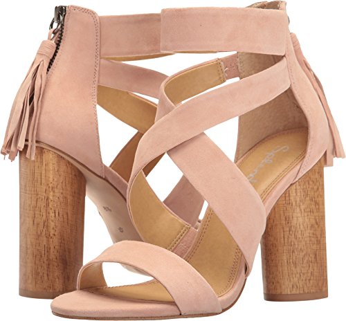 Product DescriptionMulti strap dress heeled sandal with wood heel and fringe pull tab0