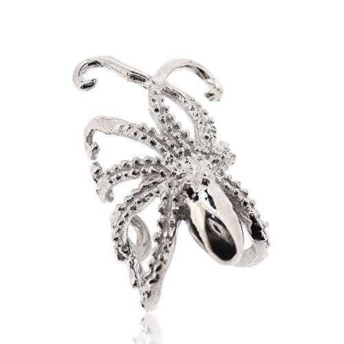 Step out with this stylish squid ear cuff. Adjustable, no piercing required ear cuff to add some attitude to any ear! Just slide it into the desired position, squeeze firmly (not too firmly!) until it is sitting just right. Made from sterling silver with rhodium plating. Sold by piece.
