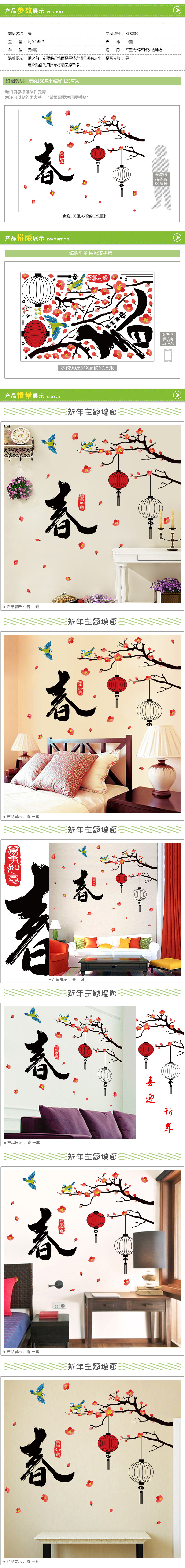 贺岁春节中国风书法字画墙贴纸卧室客厅电视背景墙纸自粘装饰贴画