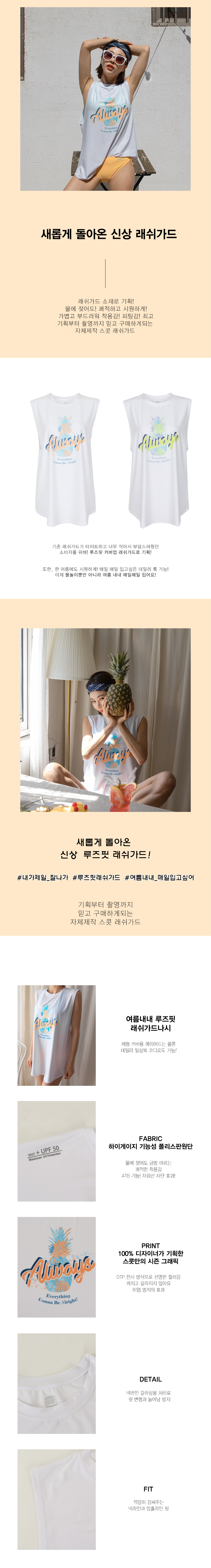 MD COMMENT 베이직 하게 즐기기 좋은 래쉬가드를 소개할게요:) 75D 하이게이지 원단을 사용하여 차용감이 부드럽고 시원하구요~ 기능성 폴리스판을 사용하여 자외선 차단의 기능이 있답니다!