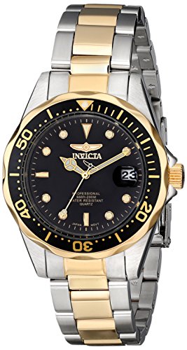 -. Feature : With a masculine, sophisticated design and durable technology, the Invicta Pro-Diver is the ideal timepiece for a black tie affair--or a day in the water. / Japanese Quartz movement with analog display / Protective anti-reflective mineral crystal dial window / Features second hand, luminosity, push-down crown, magnified date window, uni-directional rotating bezel, two-tone stainless steel / Water resistant to 660 feet (200 M): suitable for recreational scuba diving