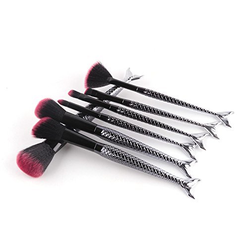 BYBOO 7 Pcs Make up Brush Set Kabuki Style Professional Fashion Mermaid Handle Synthetic Hair Powder Foundation Face Contour Liquid Eyeshadow Eyeliner...
