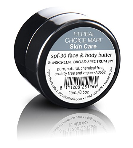 Herbal Choice Mari Natural SPF 30 Face & Body Butter, Unscented (0.5floz Glass)